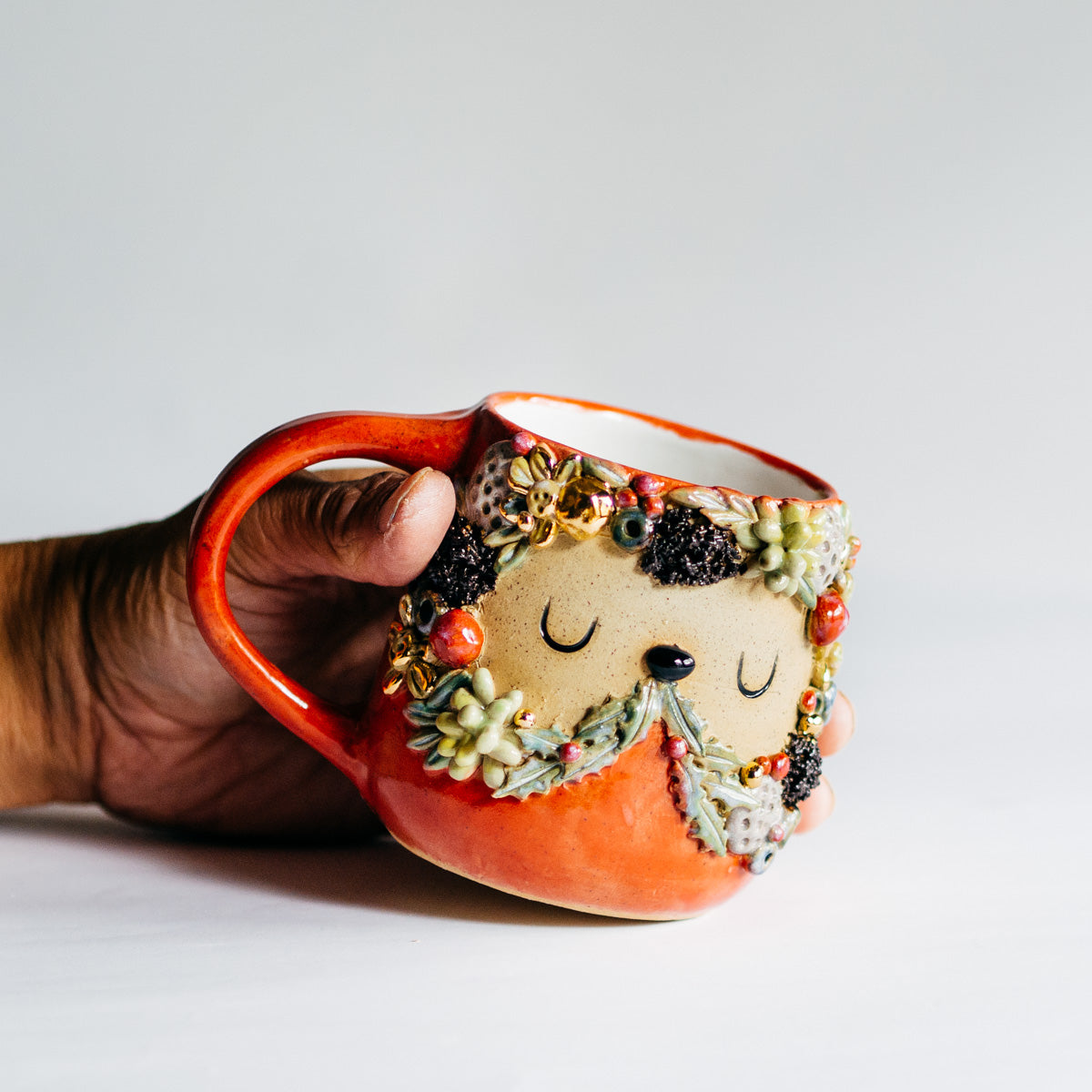 Ho! Ho! Ho! Dreamtime is getting all festive. Here is the limited edition Dreamtime Christmas cup in delicious glossy red, adorned with baubles, candy canes, holly and pressies. Wheel thrown in warm clay, decorated meticulously by hand then mid-fired at 1260C. Finish touch with 20k gold lustre. Each piece is a labor of love and took weeks to make from start to finish, we like to think it is more than just a planter but a beautiful piece of art that you will display in your home for many years to come.