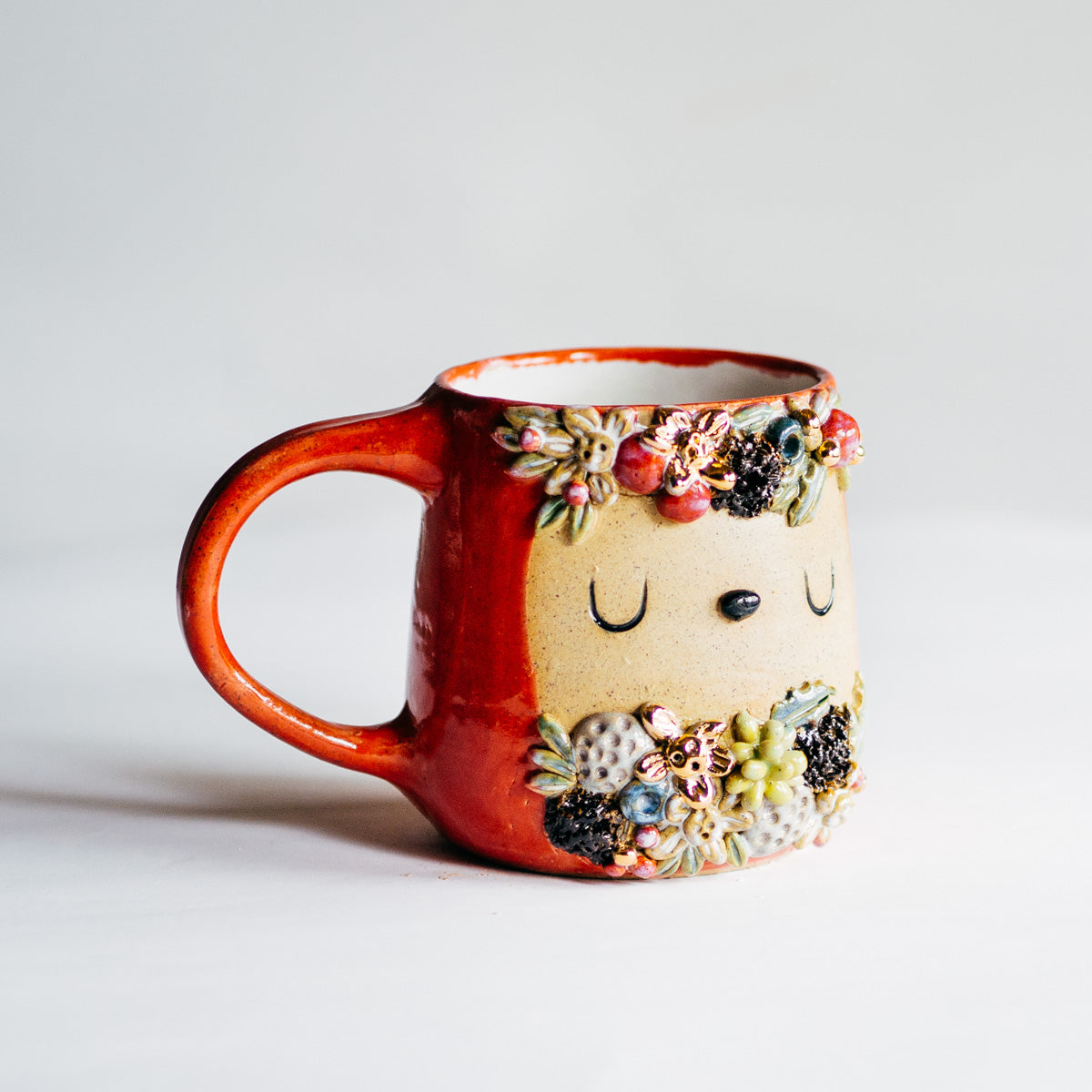 Ho! Ho! Ho! Dreamtime is getting all festive. Here is the limited edition Dreamtime Christmas cup in delicious glossy red, adorned with baubles, candy canes, holly and pressies. Wheel thrown in warm clay, decorated meticulously by hand then mid-fired at 1260C. Finish touch with 20k gold lustre. Each piece is a labor of love and took weeks to make from start to finish, we like to think it is more than just a planter but a beautiful piece of art that you will display in your home for many years to come.