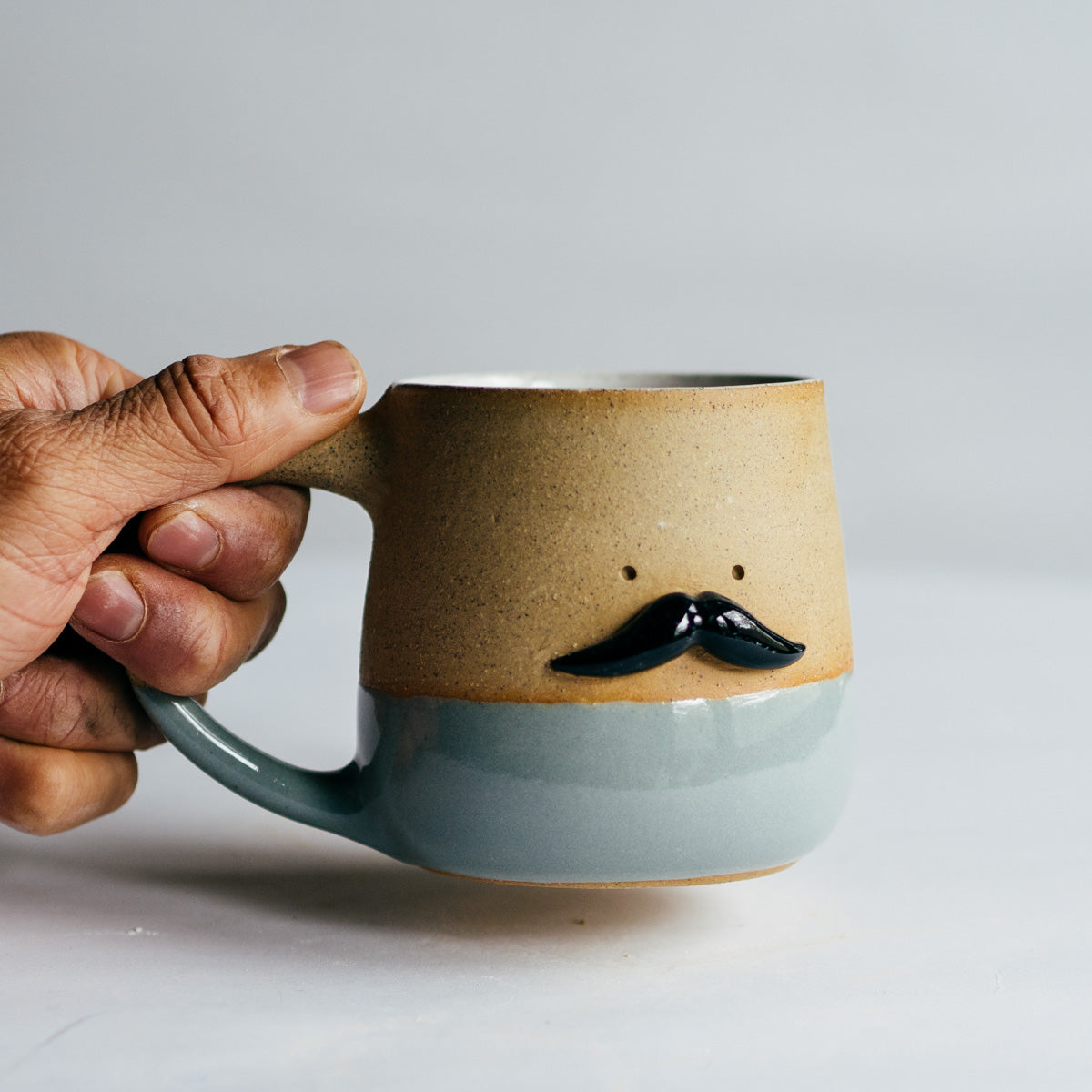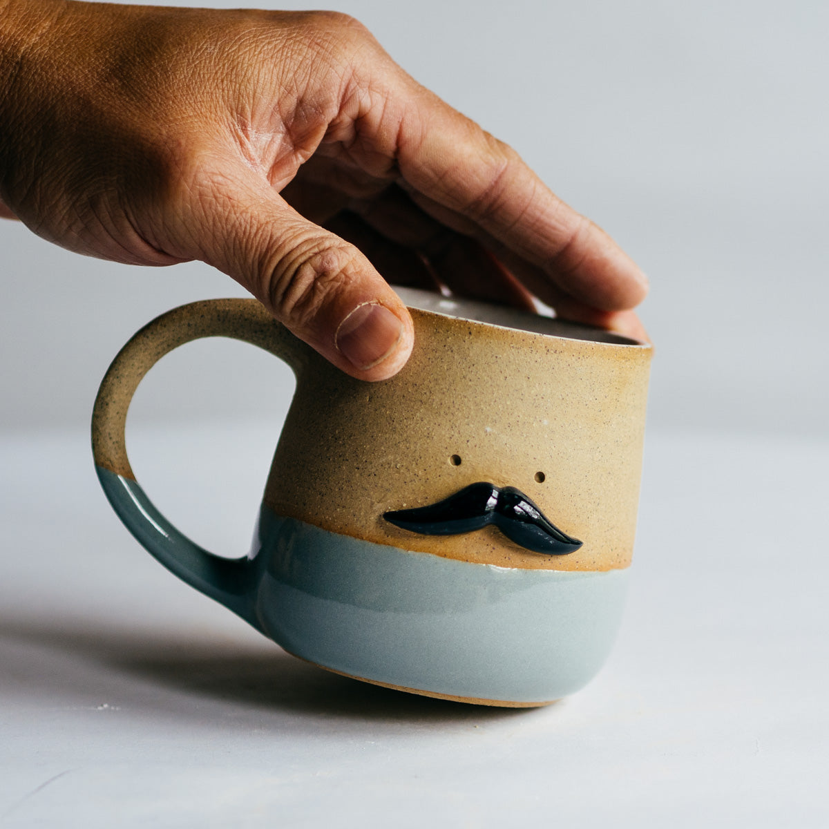 The Mr Mo-nocle cup is back! This cute Mr Mo-nocle cup is wheel thrown then mid fired with glossy glaze.