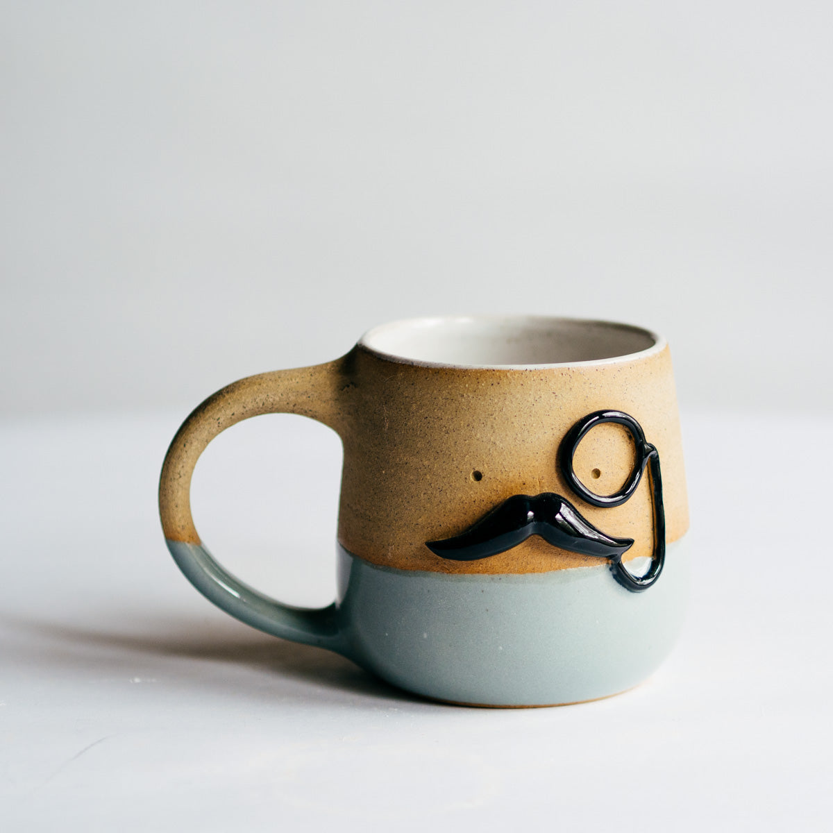 The Mr Mo-nocle cup is back! This cute Mr Mo-nocle cup is wheel thrown then mid fired with glossy glaze.