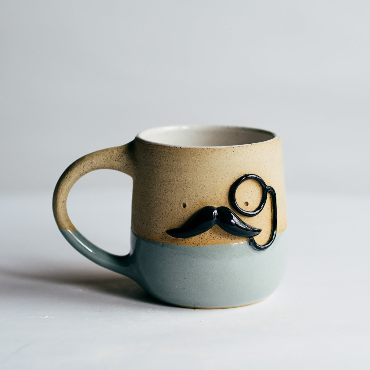 The Mr Mo-nocle cup is back! This cute Mr Mo-nocle cup is wheel thrown then mid fired with glossy glaze.