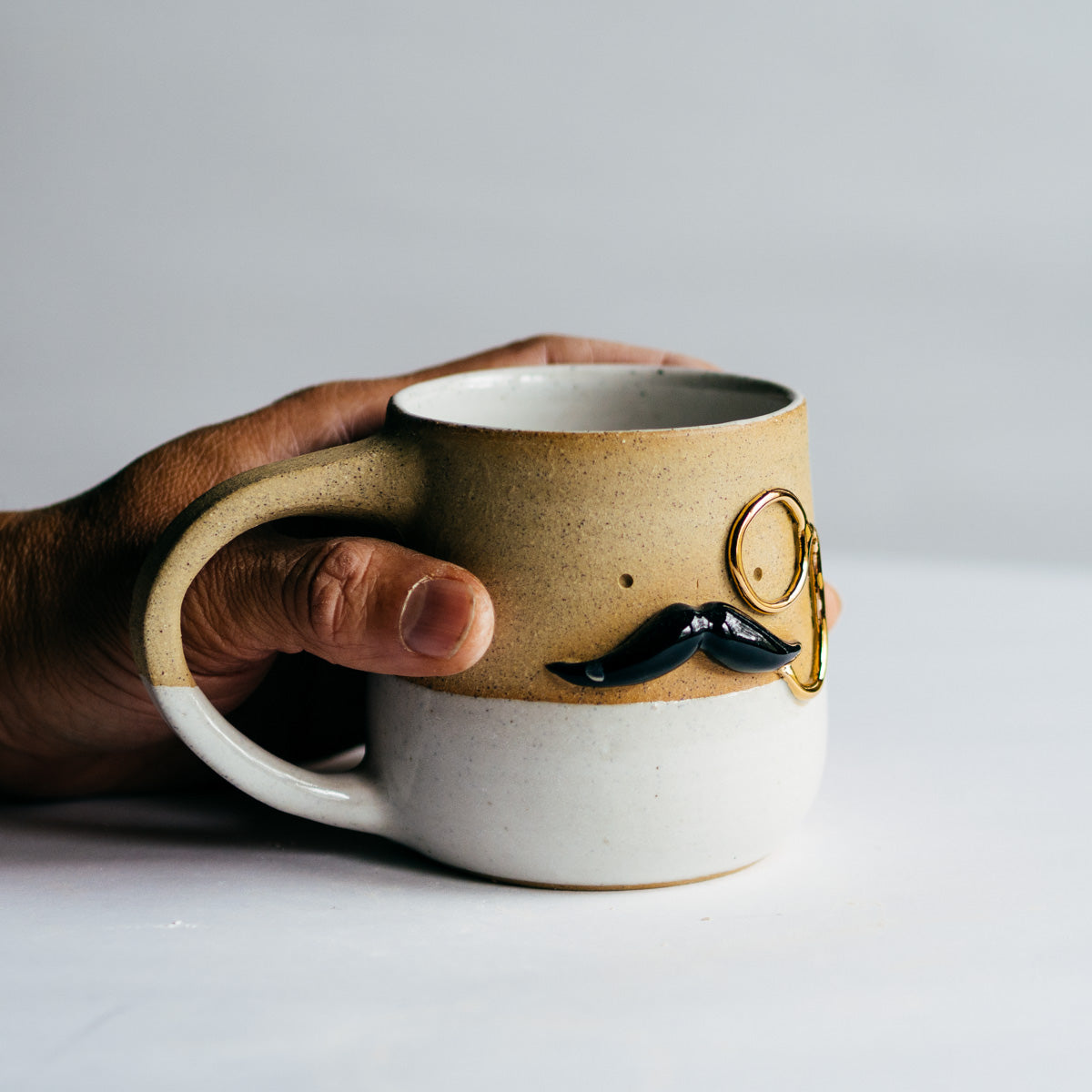 The Mr Mo-nocle cup is back! This cute Mr Mo-nocle cup is wheel thrown then mid fired with glossy glaze then finished off with gold lustre monocle rim.